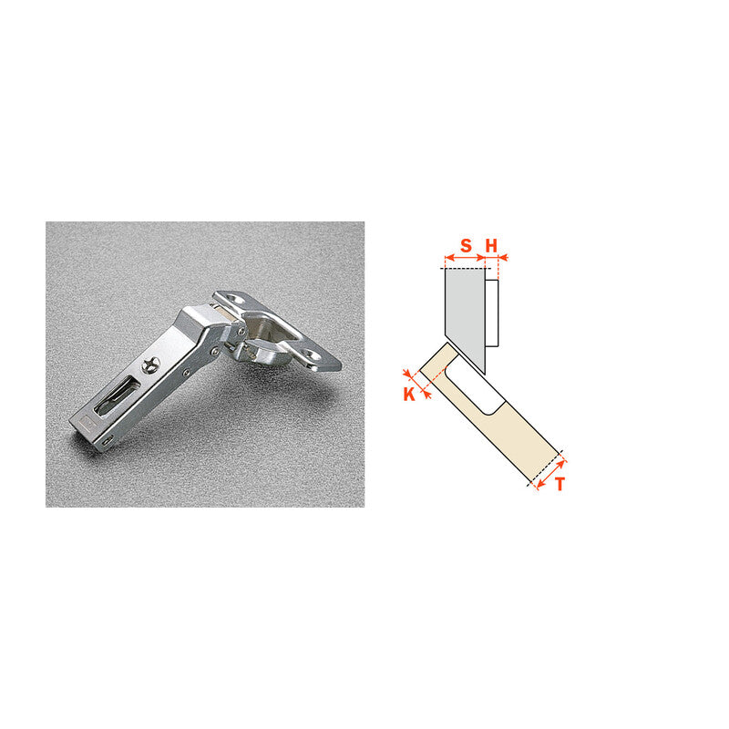 Cerniere per ante in legno con montaggio ad angolo positivo. Profondit della scatolina metallica 11 mm. Apertura 94 gradi. Possibilita di foratura dellanta K da 3 a 9 mm. Adattabili a tutte le basi tradizionali Serie 200 e a tutte le basi Domi a innesto rapido. Collo 45 gradi. Chiusura automatica.