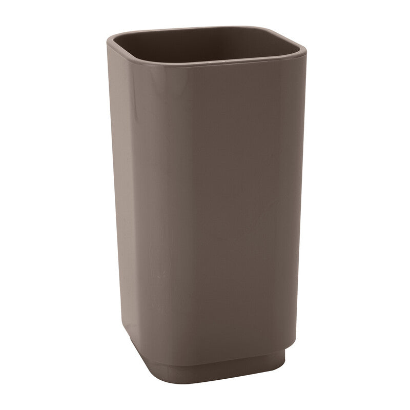 Design Matteo Thun. Bicchiere portaoggetti dappoggio realizzato in resina, dal design semplice e funzionale per un ambiente perfettamente ordinato. Adatto per spazzolini da denti e pennelli da trucco. Colore tortora scuro. Dimensioni 6,5 x 6,5 x h 12,2 cm. Art 6398/52