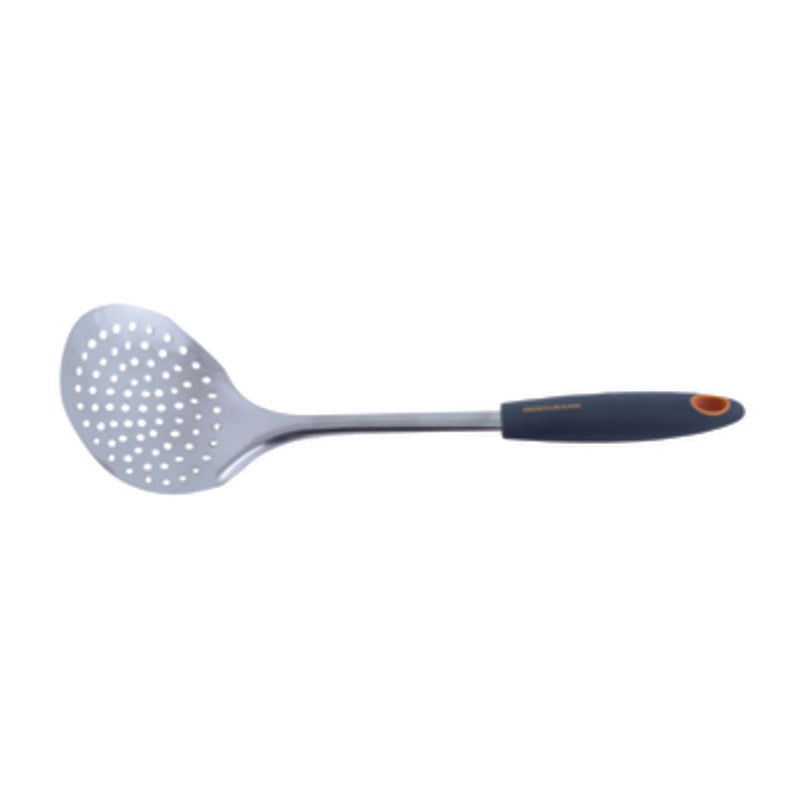 Linea Soft touch schiumarola in acciaio, con manico in rivestimento termoplastico di alta qualit. Dimensioni 320 x 110 x 40 mm.