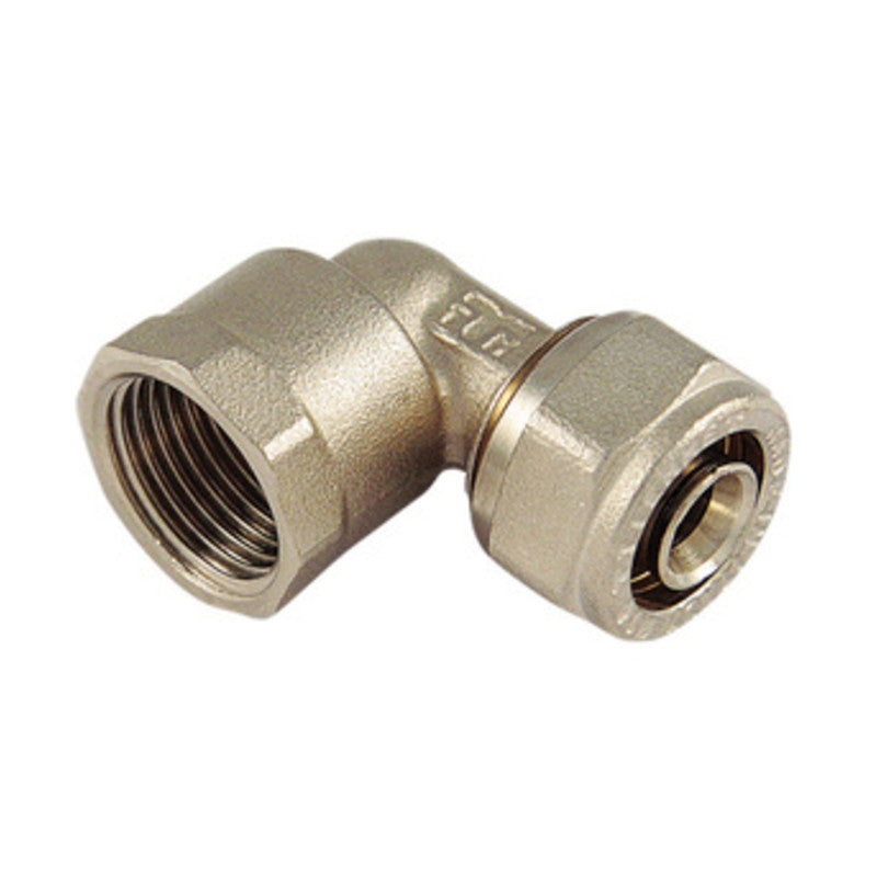 raccordo curvo in ottone nichelato. A stringere. Per tubi multistrato, pressione max 10 bar. Attacco femmina. Diametro 20x2 mm x. Temperatura di esercizio max 95 C min -20 C.