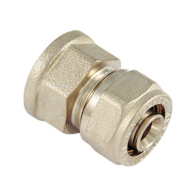 in ottone nichelato. A stringere. Per tubi multistrato, pressione max di esercizio 10 bar. Attacco femmina. Diametro 20x mm. Temperatura di esercizio max 95 C min -20 C.
