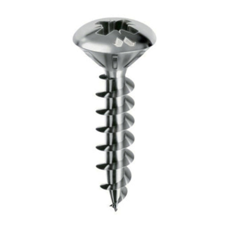 in acciaio nichelato lucido.Adatta per il fissaggio di maniglie e cerniere grazie al profilo leggermente arrotondato della testa.Le nervature frenanti sottotesta, grazie al loro spigolo vivo, determinano un arresto per attrito in fase di serraggio, evitando lo spanamento del materiale. Taglio a croce  Testa svasata calotta.