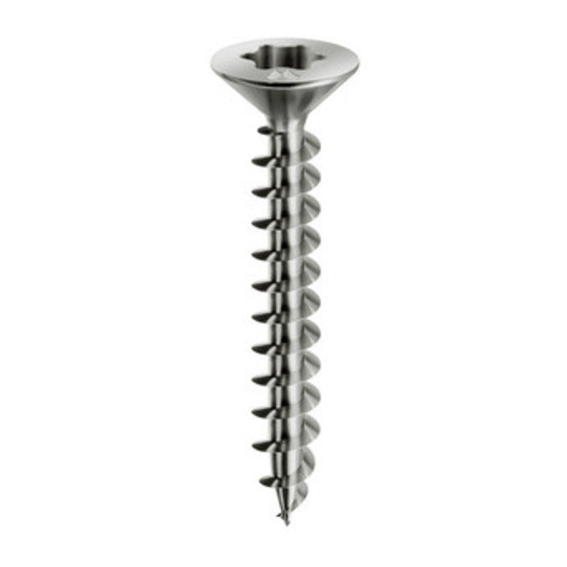 in acciaio con trattamento anticorrosione Chromiting.adatta per lavvitamento senza preforo su pannelli truciolari, legno, elementi di ferramenta, lamiere sottili, plastiche e tasselli. Cava esalobata TX ad elevata profondita che, grazie alle pareti verticali, trasmette interamente la forza di avvitamento evitando spanamenti dellinserto ed usura della cava. Impronta TX. Testa svasata piana. Lubrificate Lubex.