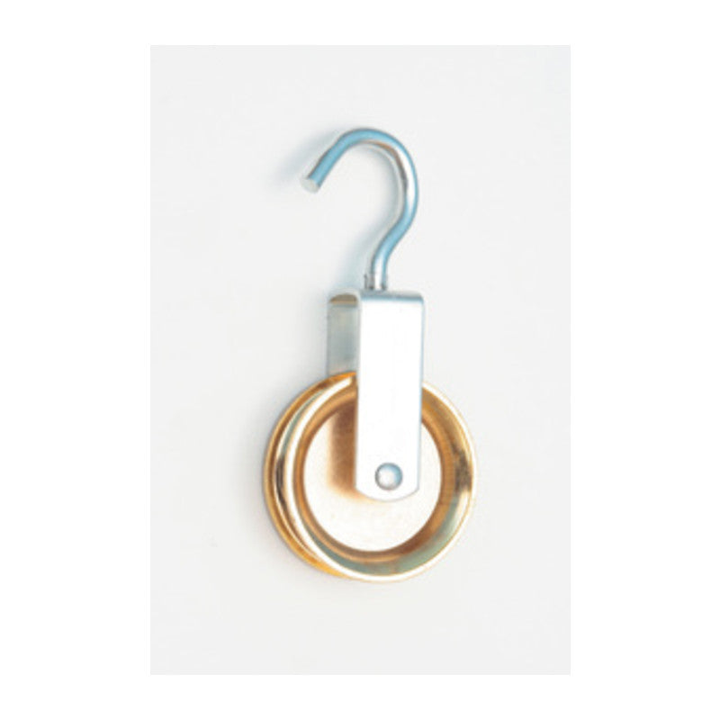 gancio girevole in acciaio zincato. Ruota in zama ottonata. Diametro 30 mm. In blister da 2 pz.