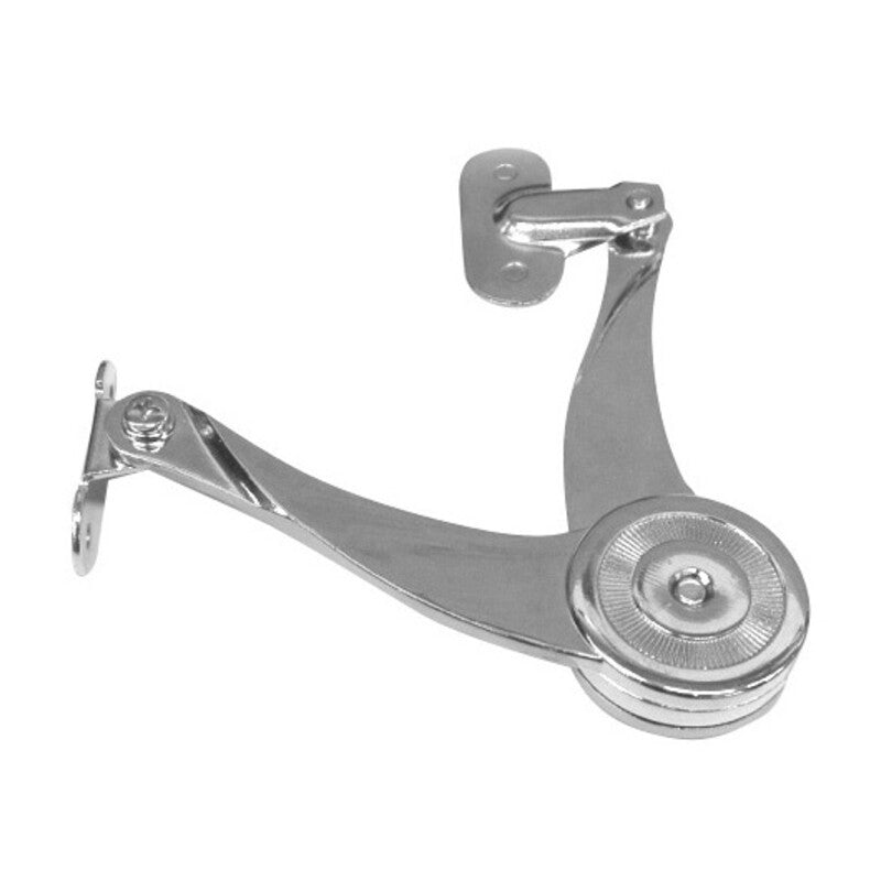 in zama cromata. Completo di viti e supporti per ante in legno. Lunghezza braccio 105 mm Confezione blister