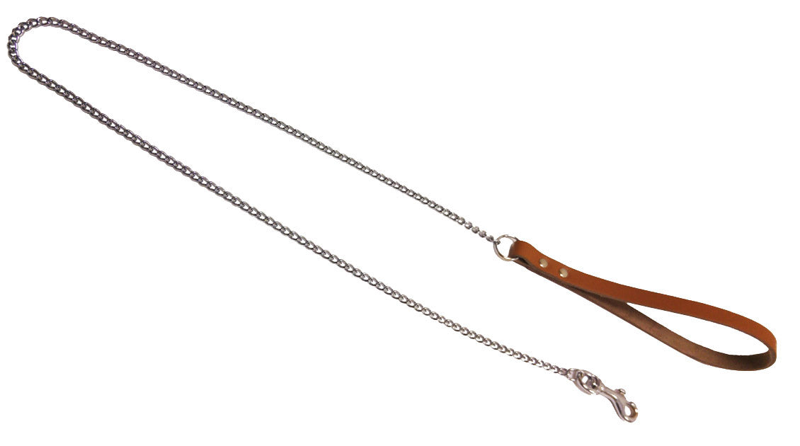 in acciaio con manico cuoio. Lunghezza 100 cm Maglia piccola